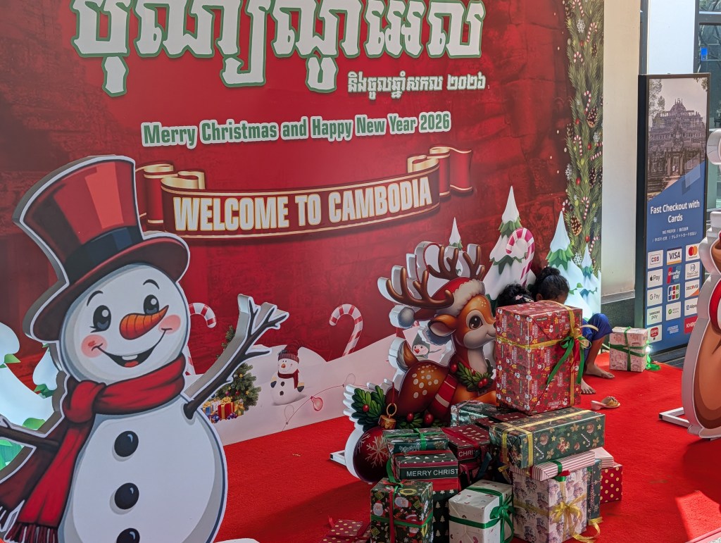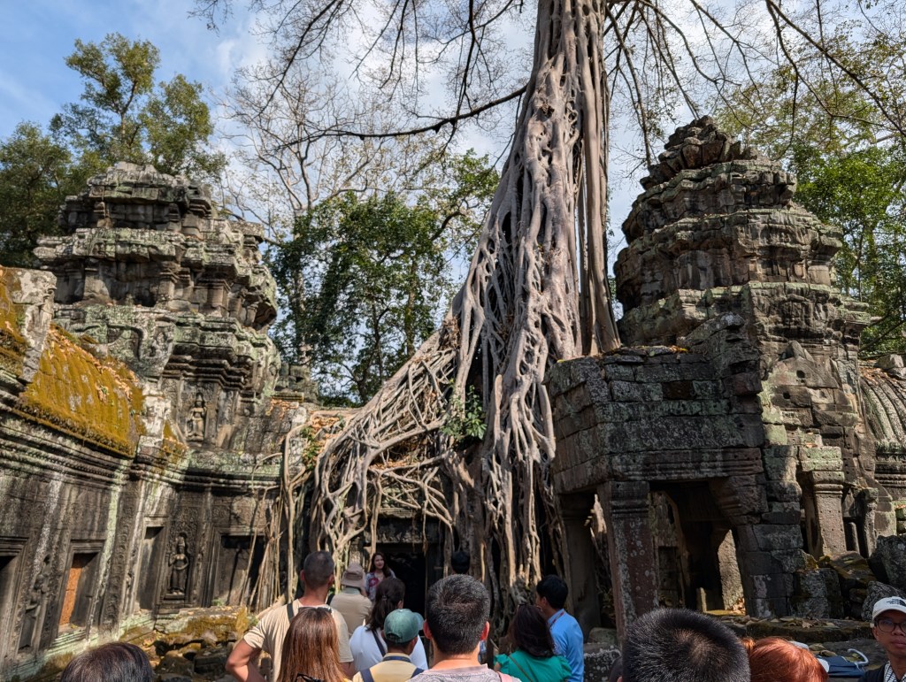 On New Year’s Day 2026 we tuktukked to the visitor center at Angkor Archaeological Part, got our three-day passes, admired the Christmas decorations, and then headed into the park for our first look at the ruins. The first day focused on Angkor Thom, the remains of the former capital city of the Khmer Empire. (Angkor Thom is the abandoned capital, Angkor Wat is the giant temple complex outside the city, which comes tomorrow.)