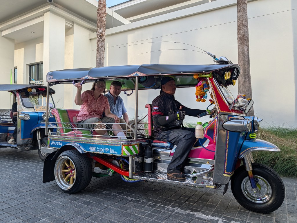 The Party Van made short work of Bangkok road traffic, and dropped us at the U Sathorn hotel in the Lumphini district of Bangkok. The hotel is lovely — a low-rise compound centered on a fancy swimming pool, with a very well-regarded restaurant that we never got to try. The beds are absurd, going beyond “king” size mattresses to something like “God-Emperor of Mankind” size. I could lie on my side of the bed with my arms outstretched, and barely reach the center.