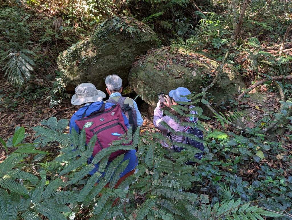 The hike looped upward, taking us up one of the ridges of the Khao Yai range. The ranger set an easy pace, and we stopped frequently so that Dr. Kelly could look for birds. I confess I spent most of my time looking at the path, watching my step — especially as we climbed and descended. A couple of times we crossed streams on fallen-log bridges. The first was no problem, but the second made me worry about keeping my balance, and I had to lean on our ranger’s walking stick to stay steady.