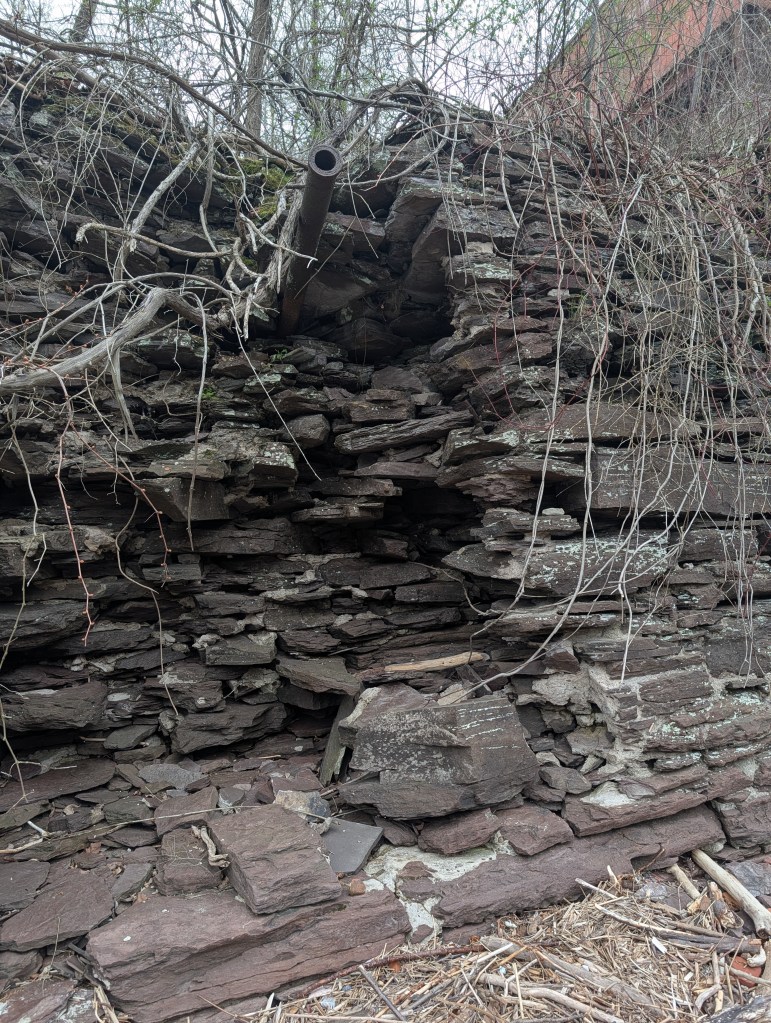 I went on a walk Saturday afternoon, on the banks of the Connecticut River in Turner’s Falls. I’ve never been down there before, and it came as a wonderful surprise. The abandoned factories along the river have crumbled, and the fallen stones and bricks have turned into a kind of post-industrial mosaic. Changes in the level of the river as the nearby dam lets down water casts clumps of bleached driftwood onto the bank in amazing patterns — as if you gave Andy Goldsworthy an infinite budget, decades of time, and the power of a river.